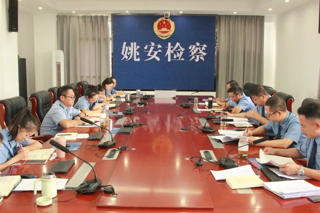 9月28日,姚安县人民检察院党组理论学习中心组举行学习贯彻习近平新时代中国特色社会主义思想主题教育专题学习,党组书记、检察长杨文强主持会议并讲话,院领导班子成员、科级以上干部、各内设部门负责人、入额检察官和群团组织负责人参加了会议。