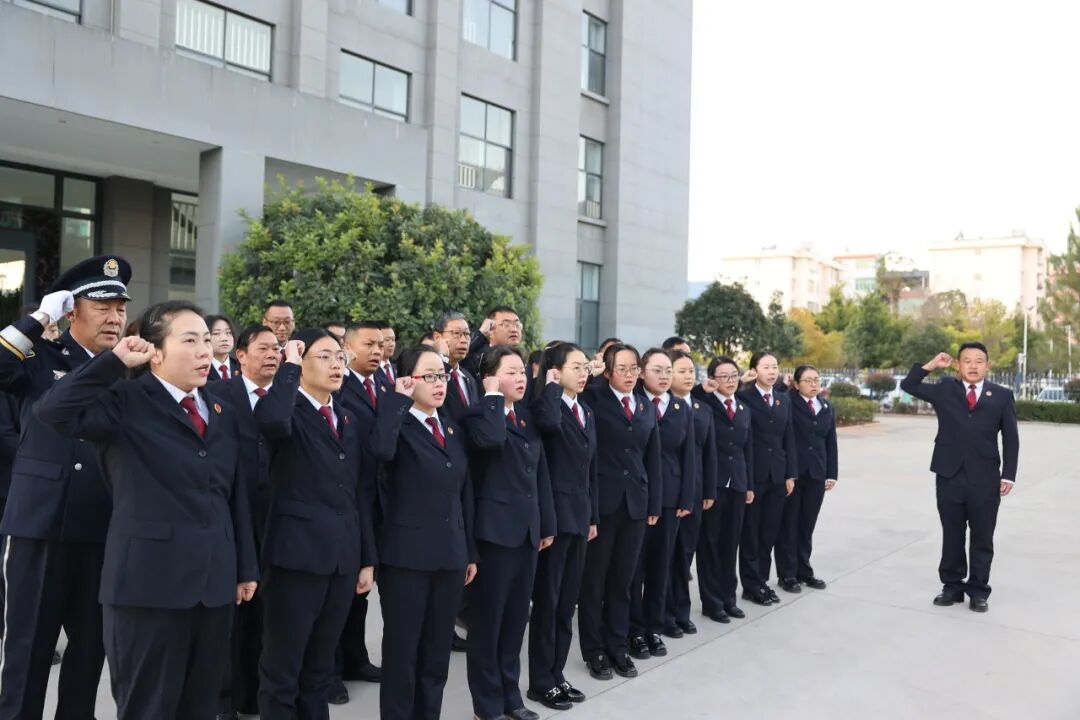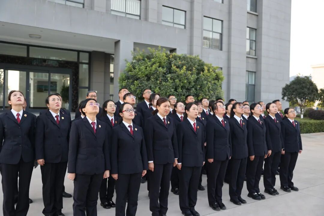 清晨,全体干警怀着对祖国的无限崇敬与热爱,整齐列队于升旗台前,伴随着雄壮的国歌声,庄严注视五星红旗冉冉升起。升旗仪式后,全体党员重温入党誓词,集体诵读《中国共产党章程》部分章程,为三位党员过了政治生日,院党组书记、检察长杨文强作了国旗下的讲话。
