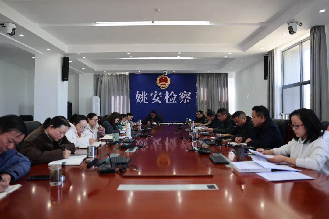 2026年1月21日,姚安县人民检察院召开党组理论学习中心组2026年第一次学习暨党组班子2025年度民主生活会会前集中学习研讨会议。党组书记、检察长杨文强主持会议,院领导班子成员、各内设部门负责人、实职副科以上领导干部、入额检察官、各群团组织负责人参加了会议。