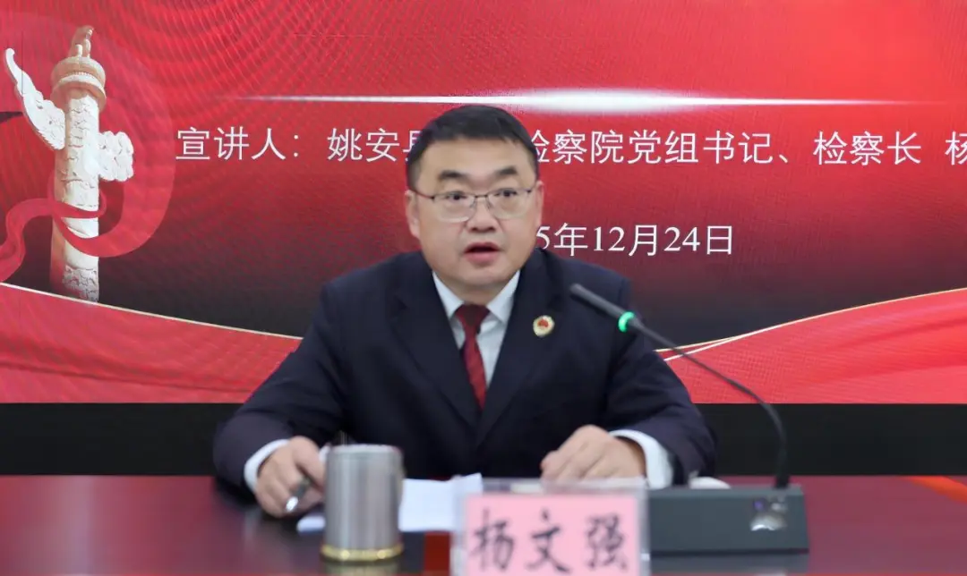 为深入学习领会、全面准确把握党的二十届四中全会精神,凝聚思想共识,激发奋进力量,引导全体干警切实把思想和行动统一到党中央决策部署上来,2025年12月24日,姚安县人民检察院召开学习贯彻党的二十届四中全会精神宣讲会,党组书记、检察长杨文强为全体干警作专题宣讲。
