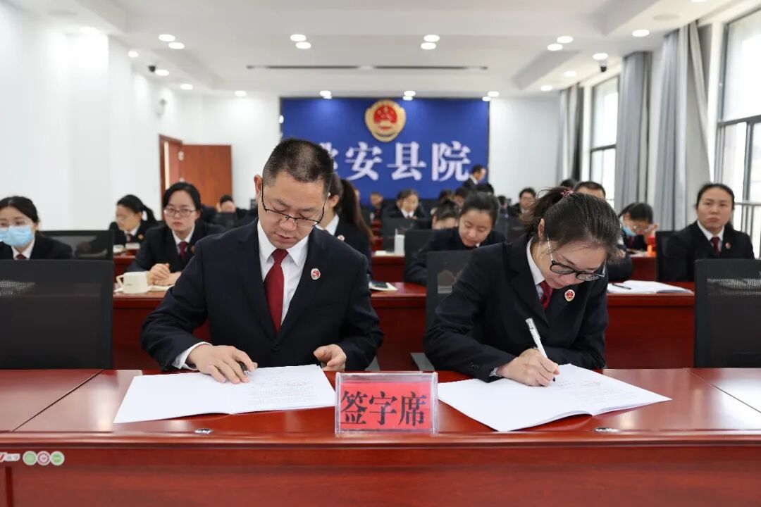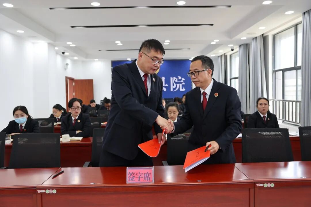 会上,党组书记与班子成员、班子成员与分管部门、部门负责人与干警层层签订了2023年党风廉政建设工作责任书。