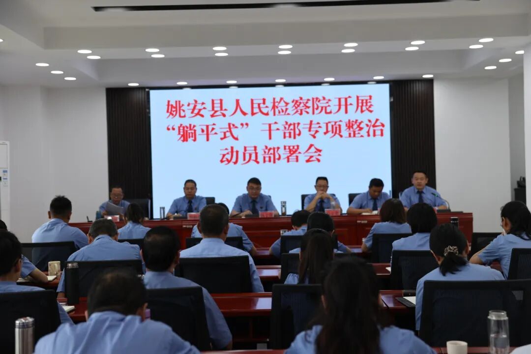 2023年8月14日,姚安县人民检察院召开“躺平式”干部专项整治动员部署会议,院党组书记、检察长杨文强作动员讲话,党组成员、政治部主任金德平主持会议,该院全体检察人员参会。