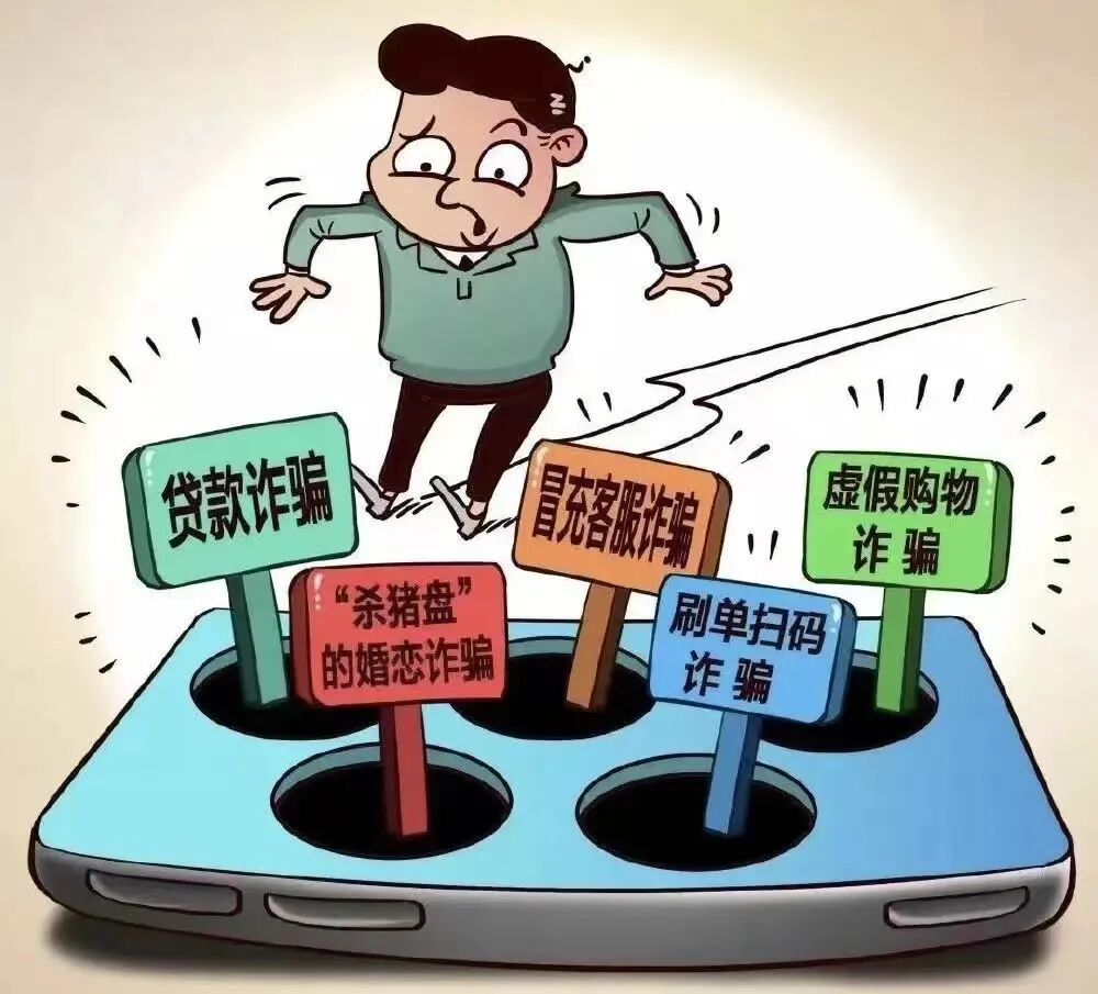 1、网络贷款、“校园贷”等。2、杀猪盘。3、兼职刷单、返利等。4、冒充各平台客服、冒充公检法等机关工作人员、冒充快递、外卖等特殊人员。5、盗号假冒熟人借钱。6、虚假理财、投资、购物、抽奖等。(各种骗局层出不穷、列举不穷尽)