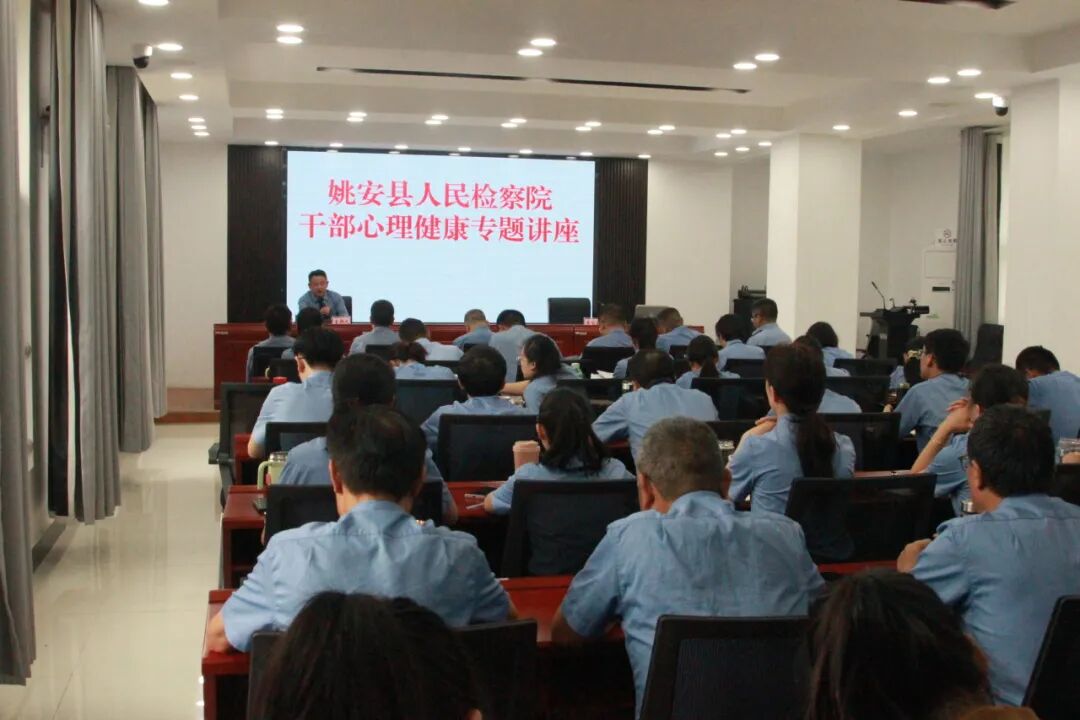 为进一步普及心理健康知识,提高检察干警心理健康水平,2023年10月7日,姚安县人民检察院举行干部心理健康辅导讲座,姚安县精神病医院李宝森、谭丽红两位执业医师应邀为全体检察干警授课辅导。