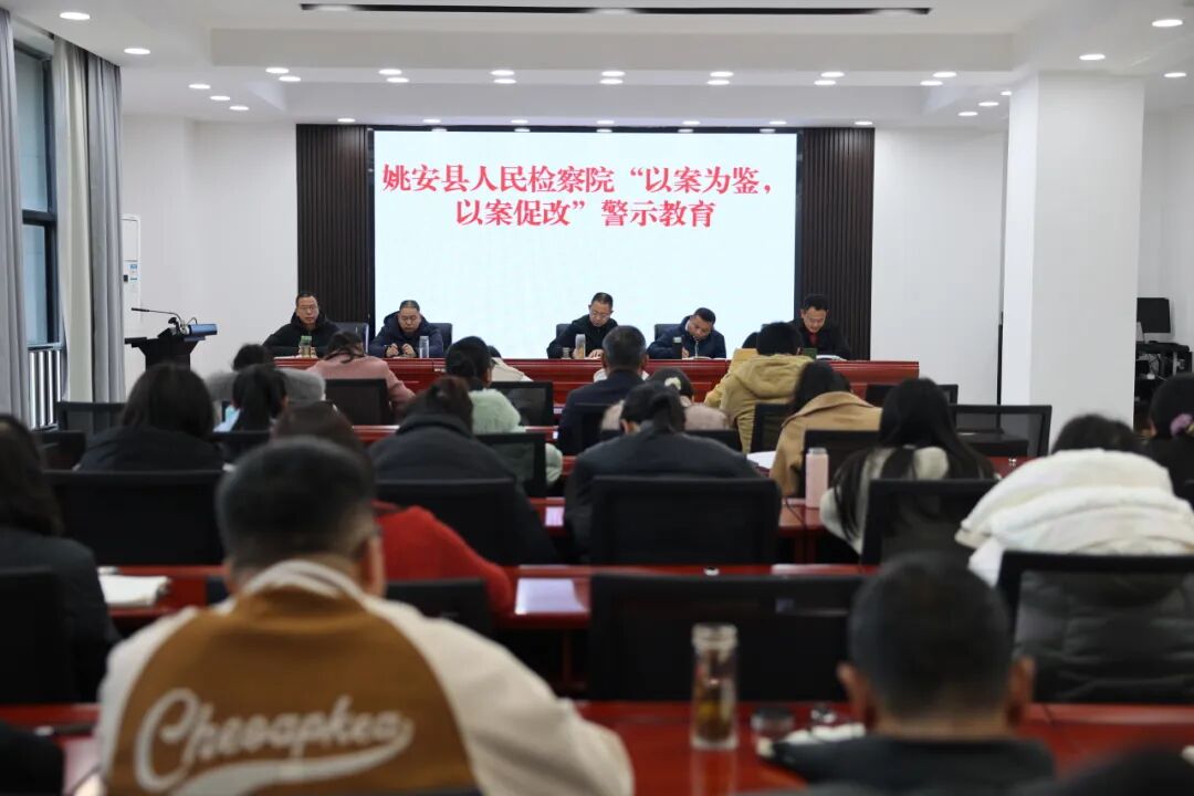 2025年1月6日,姚安县人民检察院召开“以案为鉴、以案促改”典型案例警示教育大会,会上传达学习了5起关于检察人员违反中央八项规定精神典型案例、3起检察人员违反“三个规定”典型案例、8起党员和公职人员酒驾醉驾问题典型案例、2起群众身边不正之风和腐败问题典型案例的通报,用“案中人”警醒“身边人”,发挥典型案例的警示震慑作用,推进全面从严管党治检向纵深发展。
