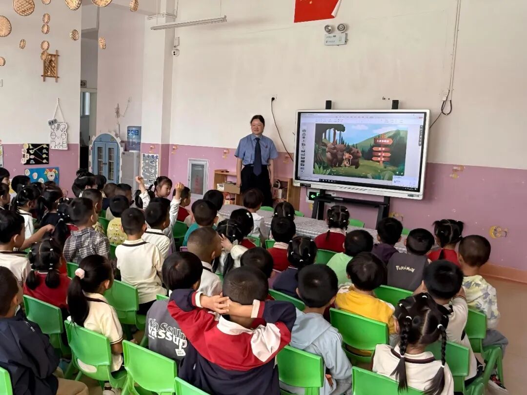 法治课中,授课的党员干警改变“照本宣科”式法律条文讲解,根据孩子们的年龄特点和认知水平,用孩子们能够听得懂、记得住的方式,把复杂的法律知识转化为简单有趣而又贴近生活的案例和互动,让孩子们“沉浸式”学习法律知识。“坏叔叔想带你去玩,你会怎么应对?”“陌生叔叔给你买奶茶,可不可以接受?”“在学校同学给你起外号,你会怎么做?”“心爱的钢笔被同学抢了,你要怎么办?”……通过这些问题引导孩子们思考如何保护自己,如何识别危险,如何在遇到问题时勇敢地寻求帮助,孩子们积极互动,争先恐后地发言,气氛热烈而有序。